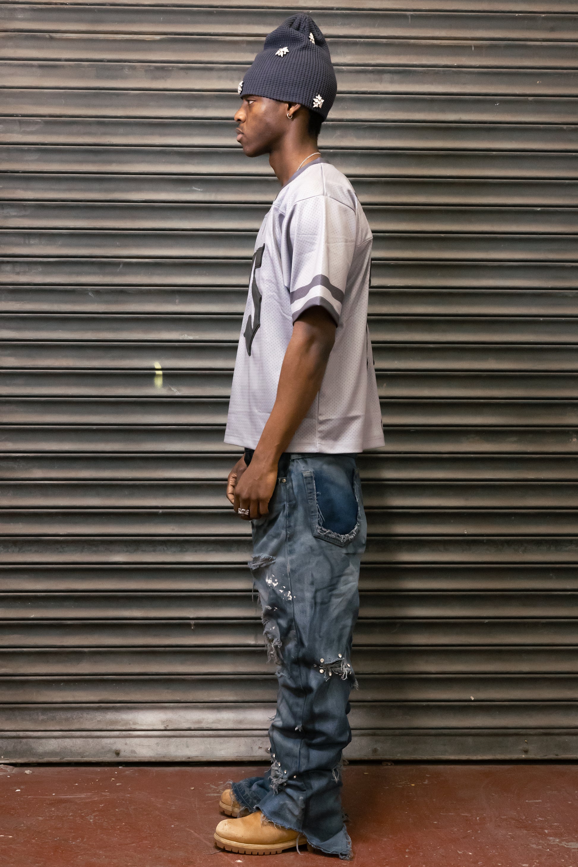 Luxury Jersey Shirt with 75 Leather Detail. Made from premium jersey material with leather accents on front and back. Features Skitzo embroidered logo.